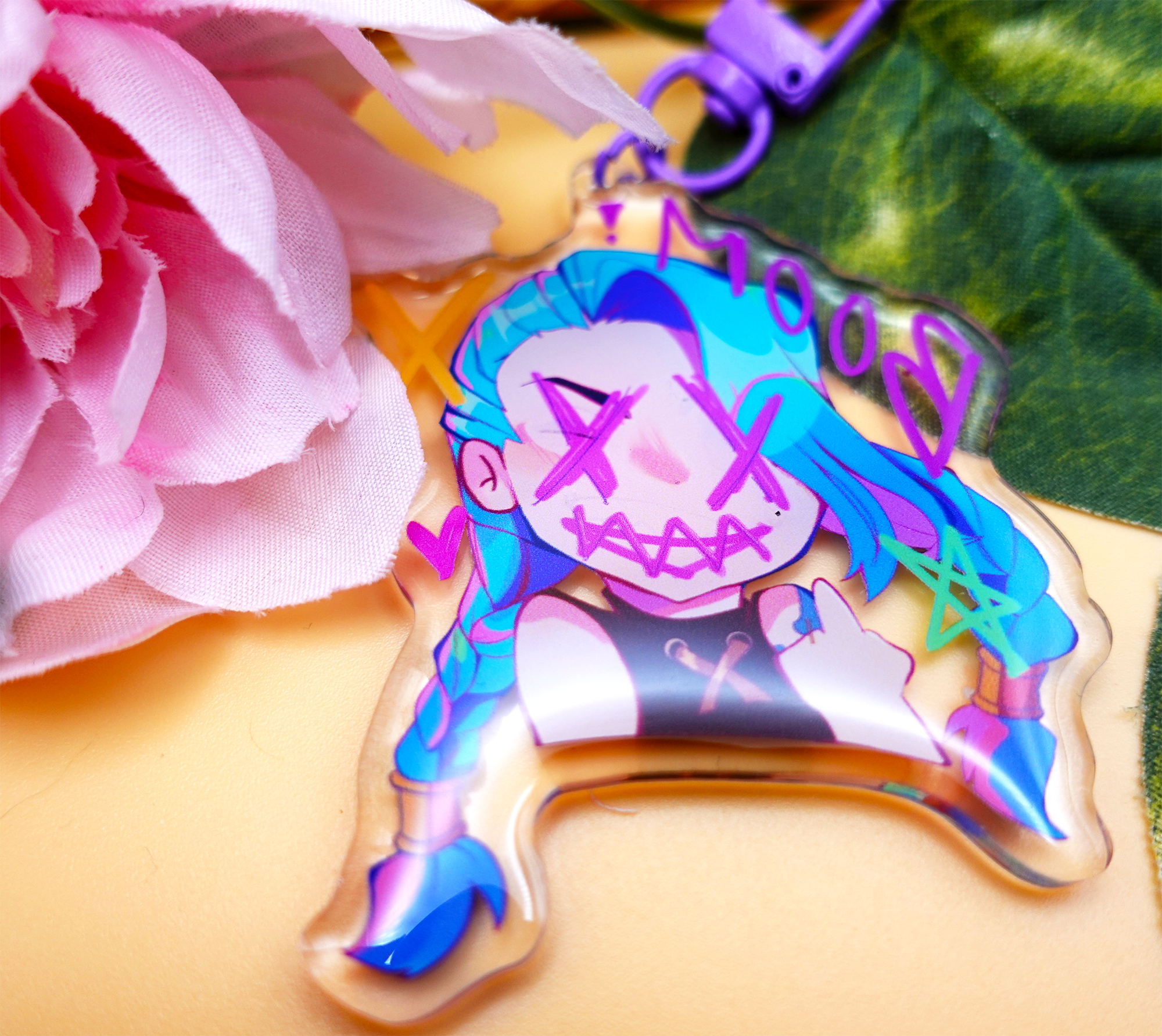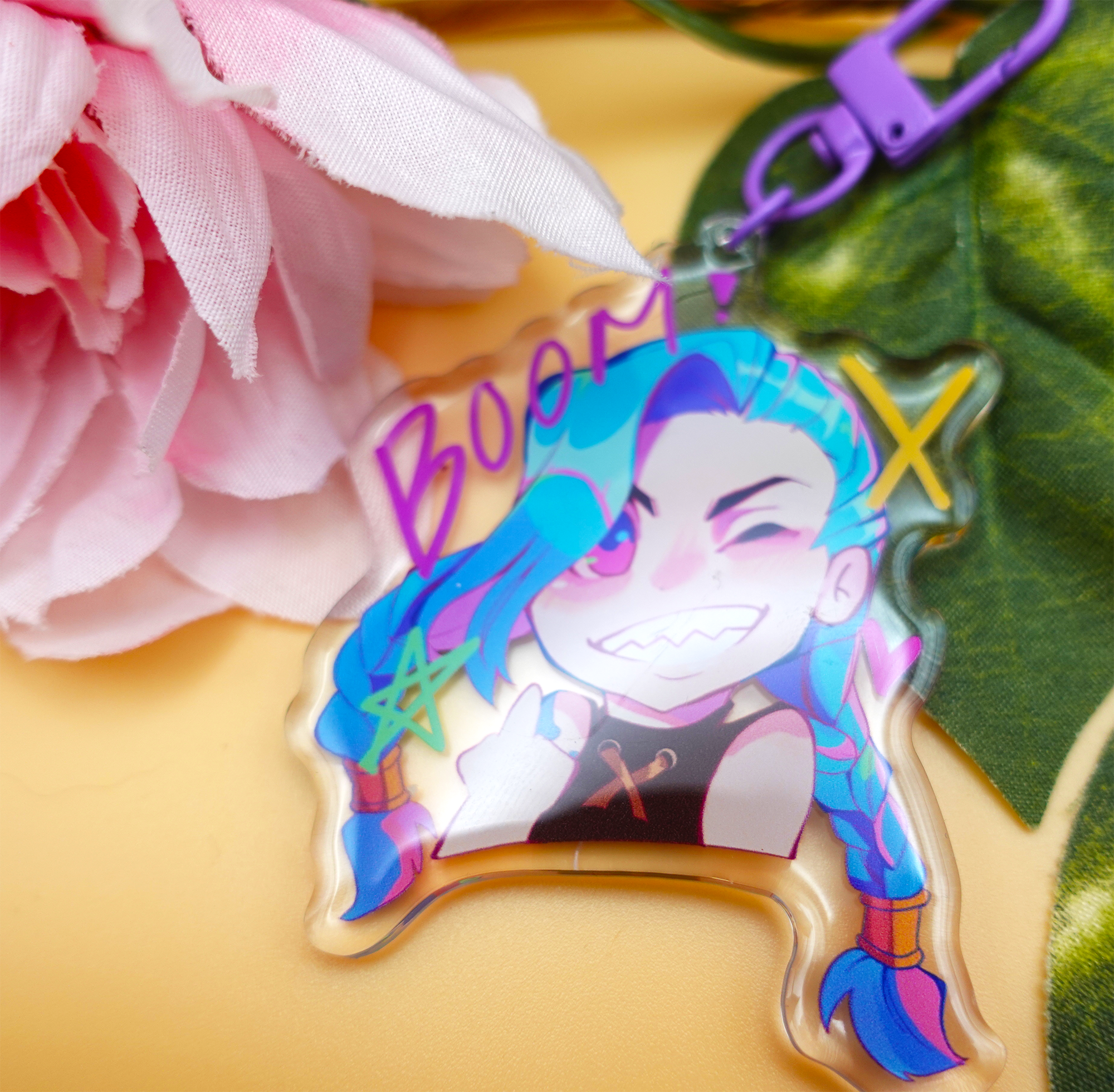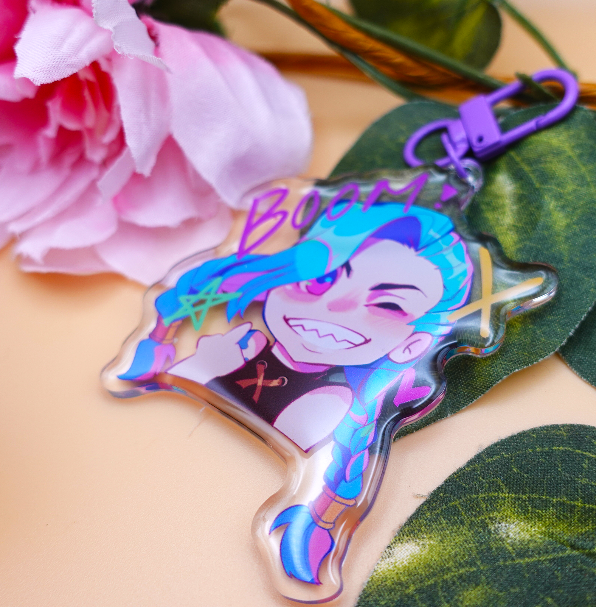 Add a spark of chaos to your everyday essentials with this Jinx acrylic charm! Bursting with vibrant color and energetic attitude, this charm captures the wild, unpredictable spirit of everyone’s favorite blue-haired troublemaker.